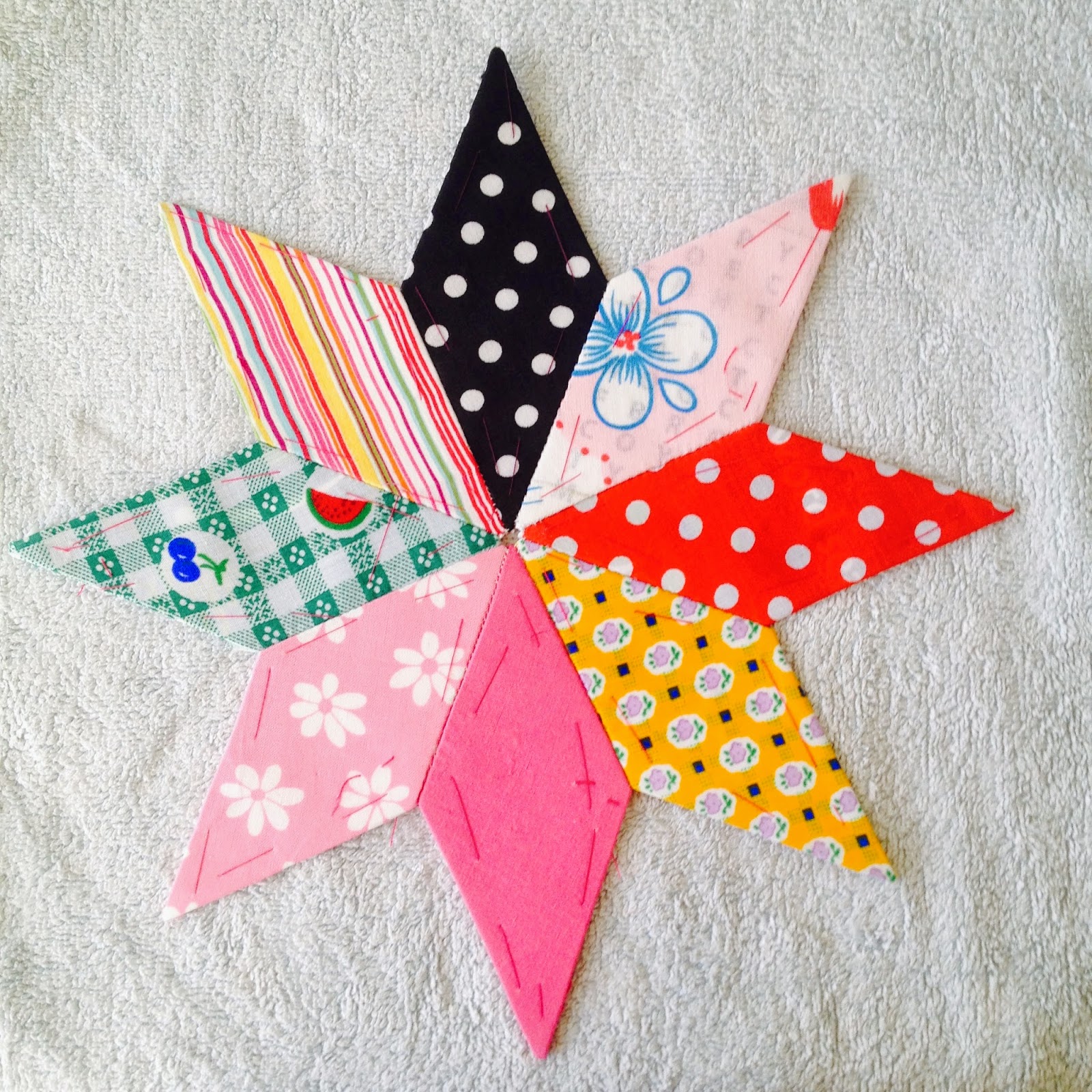I used quite a few Cath Kidston fabric samples that I had requested, retro football themed fabric that I was gifted years ago, several fabrics that I had left over from a pram quilt that I had made Middle B and fabric from a shirt that he owned. I still have the remnants of that shirt...